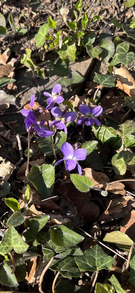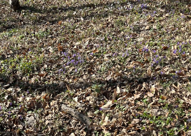 The next day, in the woods covering the hills overlooking Vienna, we bumped into sprays of violets peeping up through the dead leaves.