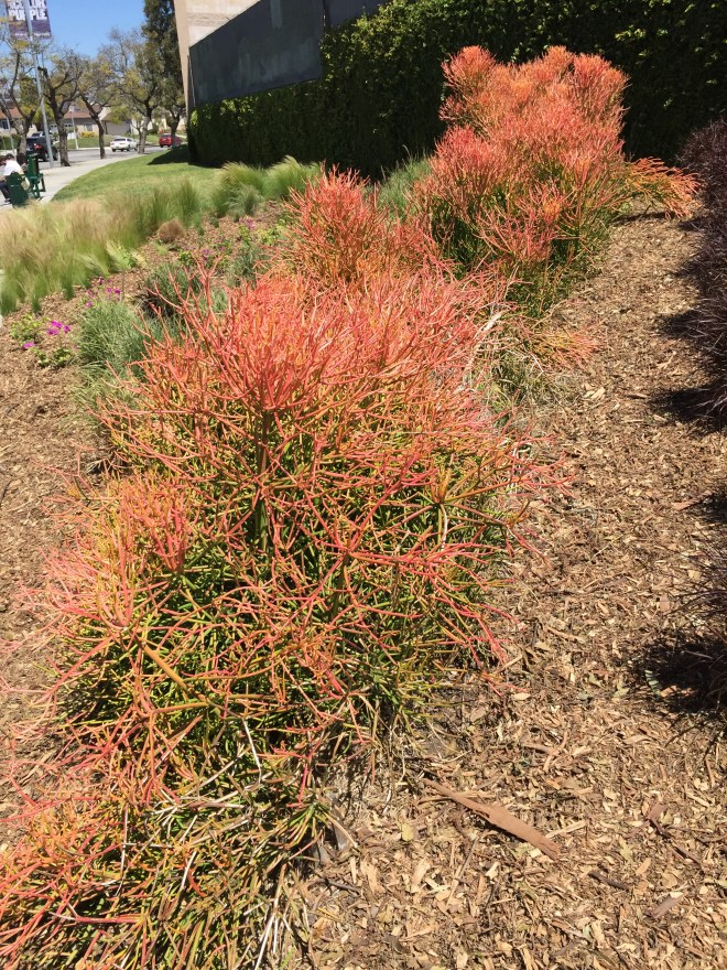In a moment of idle curiosity, I started looking more closely at all these plants. In most cases, I had no idea what they were. Luckily, though, my trusty iPhone helped me out with its plant identification app. And the picture that emerged is that the whole wide world has been brought into this little rectangle of Los Angeles earth.