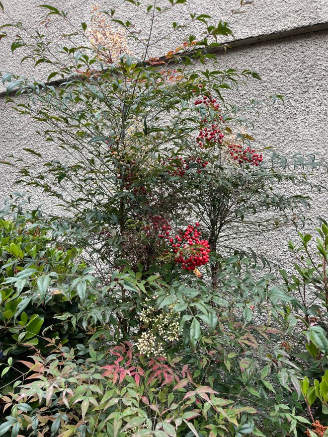 But heavenly bamboo also grows bright red berries, as this specimen I came across in the neighbourhood shows.