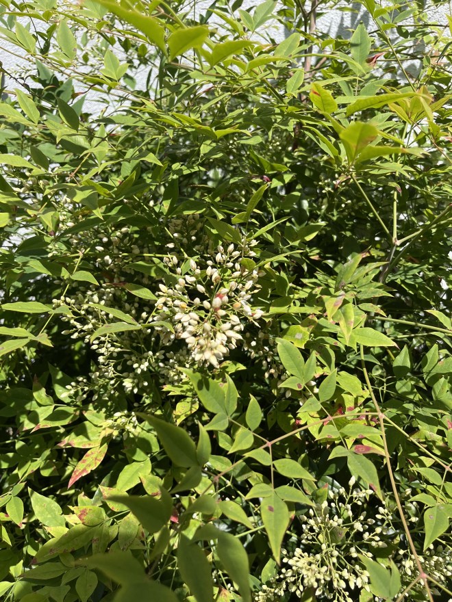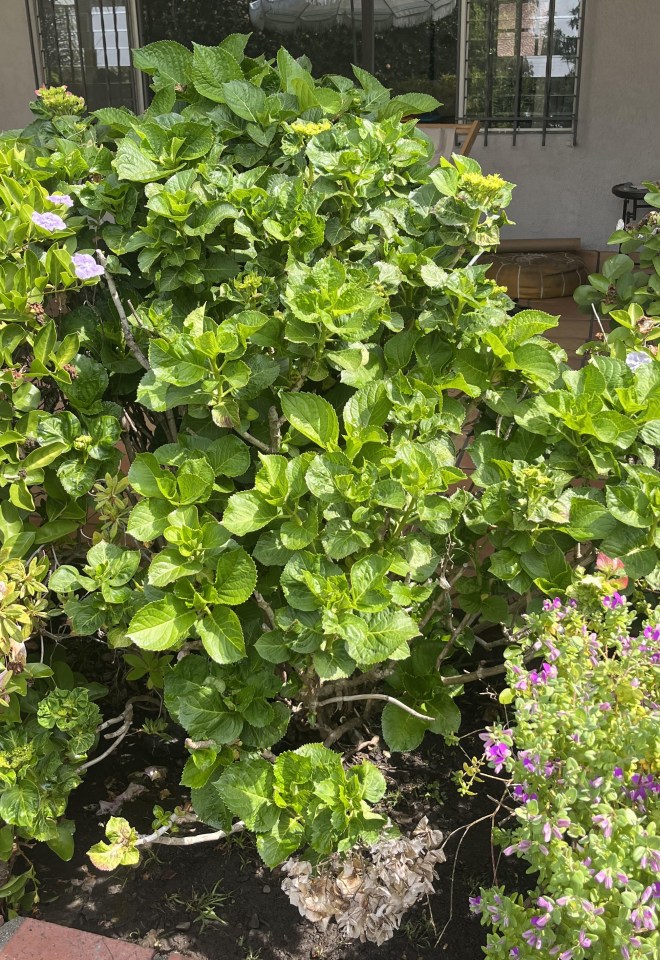 Next to the heavenly bamboo is a bush of hydrangea (or hortensia, as I’ve always called it).