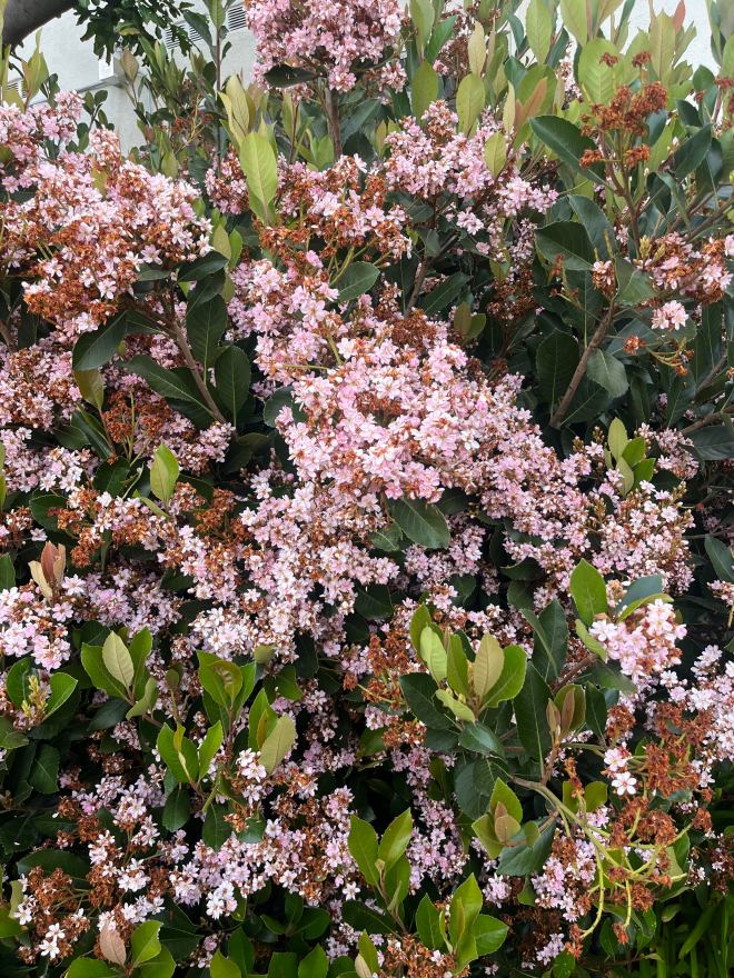 Hidden away behind some other bushes is an Indian hawthorn, which, again, despite its name, is native to southern China, as well as Japan and a number of countries in South-East Asia.