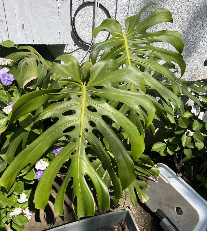 Talking of plantings by my daughter, she got the gardener to plant a monstera which had outgrown its pot. After a few days, it was looking miserable and in this case, too, I thought it wouldn’t last. But it has!