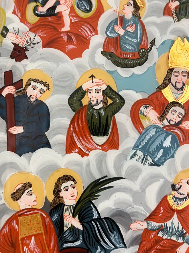 Meanwhile, in Orthodox Christianity, things took a different path for Christopher. The whole story of him carrying the Boy Christ across a river was ignored (at least until relatively recently). Instead, the focus was on his good, Christian life after his baptism and his martyrdom. So the icons of him have a young man, normally dressed as a soldier. Here is an example from Saint Paraskevi Church in Adam.