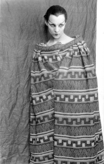 Of course, Picasso and Chanel knew each other; the artsy world is a small one, everywhere. Jean Cocteau was a firm friend of Picasso’s; he was one of the witnesses to Picasso’s marriage with his first wife, Olga Khokhlova. He was also a firm friend of Chanel’s, so naturally he introduced the two to each other … It so happened that Olga was a devoted client of Chanel’s, and Chanel regularly visited the couple after they were married … Some of Chanel’s creations were inspired by Picasso’s cubism … Chanel and Picasso collaborated with Cocteau in his 1922 adaptation of Sophocles’s Antigone: Chanel designed the costumes, Picasso designed the sets and masks; here we have the costume for Antigone …