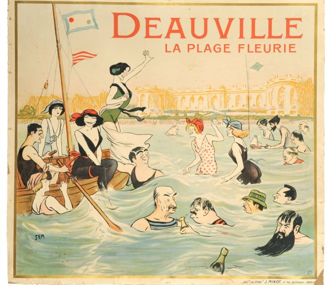 But now to the marinière’s upgrade into a fashion item. It seems that Coco Chanel was the first fashionista to take this humble piece of clothing and turn it into a fashion statement. The story goes that during the First World War Chanel would often leave Paris to go and spend time on the Normandy coast; she had a second shop in Deauville, a seaside resort which was the hang-out of the rich and famous. This is a poster for Deauville from the 1920s, when it was once again the place for the rich to go and have fun.