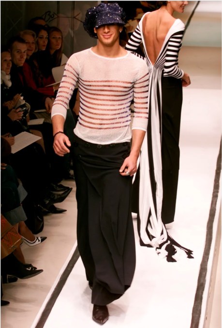 There are lots more of Gaultier’s takes on this once humble piece of clothing. Any reader who is interested in dreaming about what flash piece of Gaultier marinière-themed wear they could look for in their local vintage clothes shop can do no worse than surf this site. And there are lots of other high fashion dudes who’ve had a go at the marinière: Karl Lagerfeld for Chanel (unsurprisingly), Kenzo Takada, Sonia Rykiel, Prada, Dolce & Gabbana, Michael Kors, and on and on. I shall let readers explore.