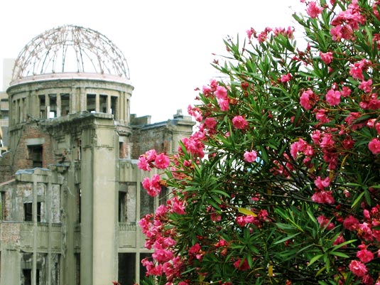 The city’s botanical gardens were not spared. So bad was the destruction that the garden’s directors thought that nothing would grow there again for decades. Yet lo and behold, the year after the bomb was dropped the oleanders in the gardens grew out from their blasted roots and flowered! The oleanders became a symbol of hope for Hiroshima’s citizens, convincing them that the city could be reborn even after this terrible catastrophe – as indeed it has. Ever since, the oleander has been the city’s official flower.