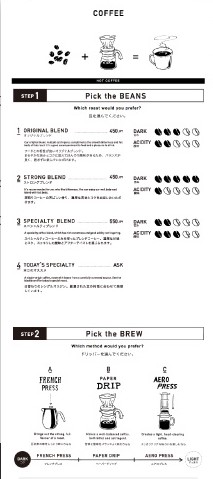 First, we have to choose our beans from a long list of various coffee beans from all around the world, each with different roasting levels. It’s so complicated it gives me a headache. I normally choose at random.