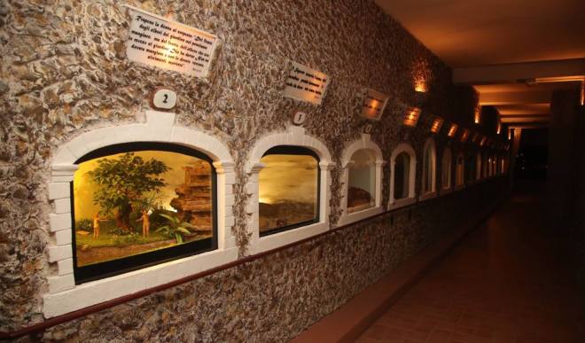 Quite by chance, just before Christmas, we stumbled across a very sophisticated crèche, in a place called Baggio, which once was a village but then got swallowed up by Milan some 150 years ago. There, in the crypt of a church, over the last forty years or so, dedicated local volunteers have created 58 scenes from the Bible, with the Nativity being the central scene. Some of the scenes have running water, others have moving figurines, … it’s very impressive. Here is a shot of the first scene, Adam and Eve in the Garden of Eden (with a delightfully slithery snake in the tree).