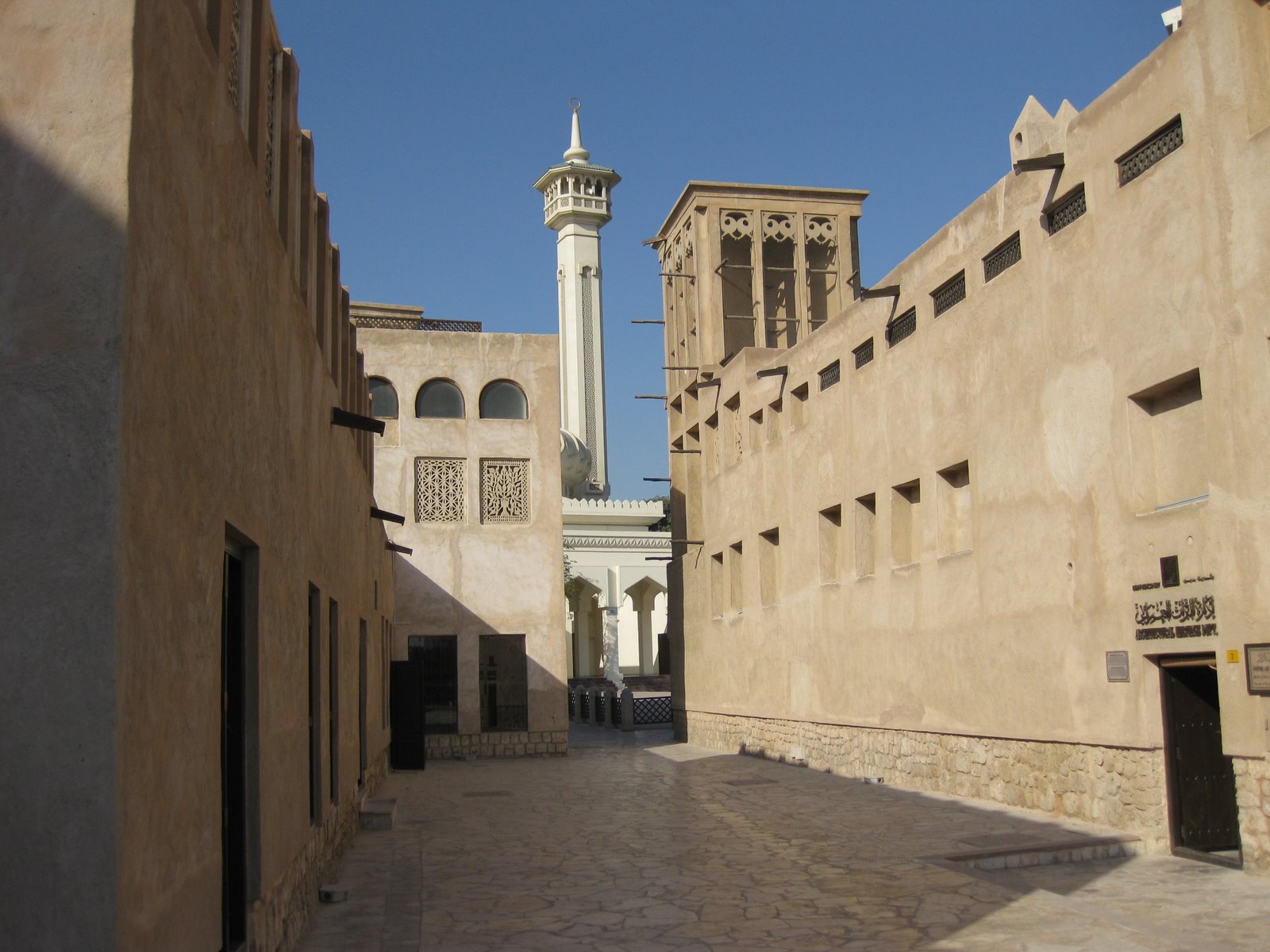 As I mentioned in my last posting, during our stay in Dubai my wife and I visited a small remnant of the old town saved for the tourist trade. Bastakia, it’s called. Though small, it’s a pleasant quarter, worth a couple of hours of strolling.