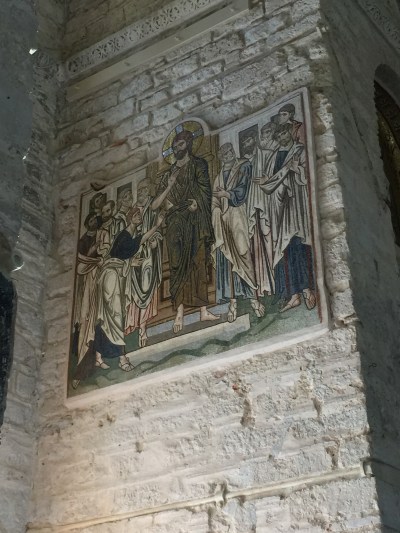 – On the outskirts of Athens, the remains of the monastery of Daphni; the few remaining shards of 11th Century Christian mosaics clinging to its walls have managed to withstand earthquakes, marauding Barbarian, Crusader, and Ottoman troops, and more recently just general indifference.