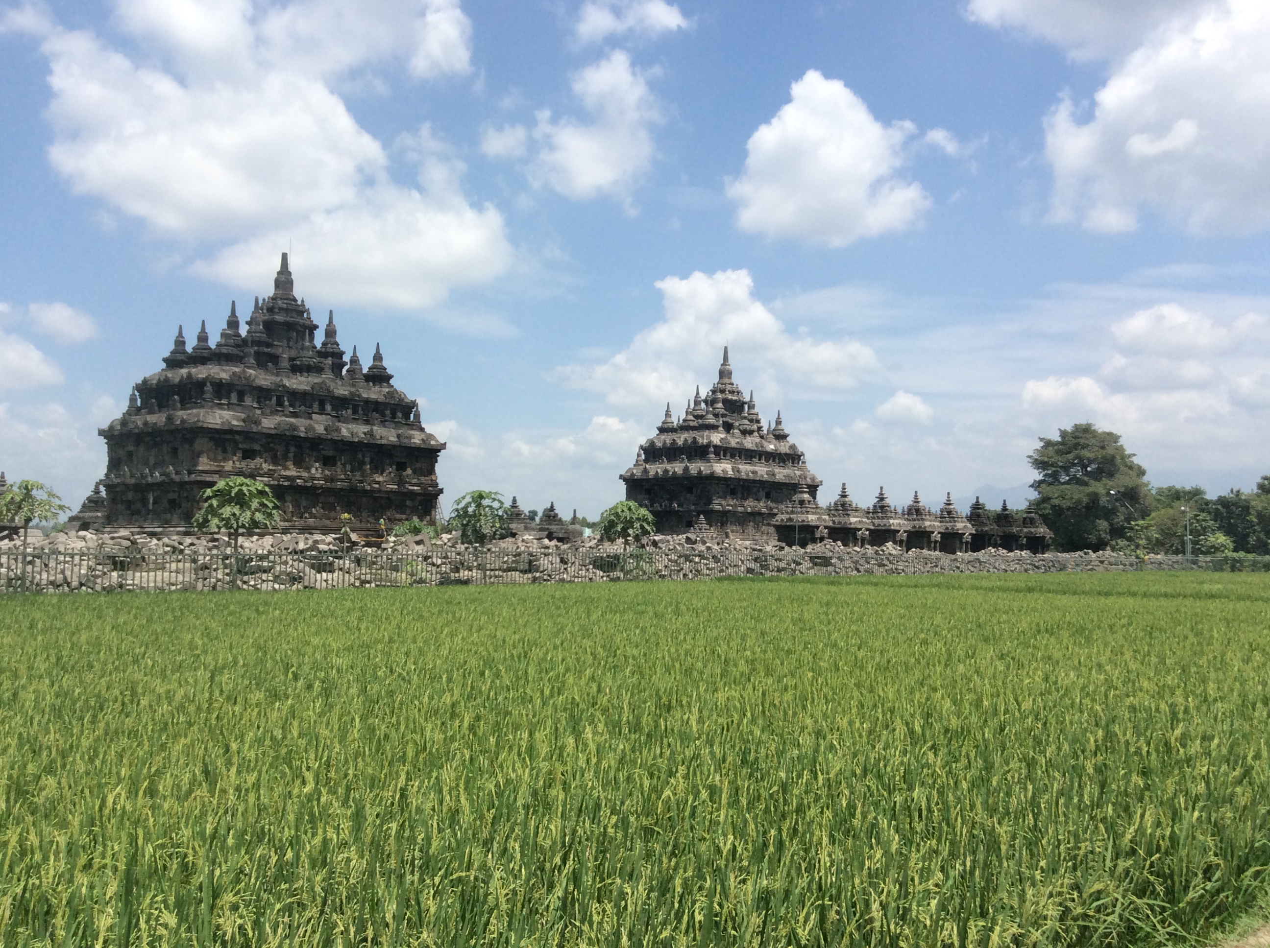 What to do, what to do? Well, hope springs eternal, as they say. We kept telling each other that surely they would reopen the temples quickly, within a few days, maximum! I mean, all those disappointed tourists milling around! All their money not being spent on entry tickets and ancillaries! So on the first day, we walked down to Borobudur to check out the situation. Not brilliant. It would be a long time before the temple itself would be reopened, we were informed, although the grounds might be re-opened in a few days. The locals helpfully guided us to a spot on a side road from which one could see the temple quite well. They were right, with the foreground of tender green rice shoots being particularly appealing.