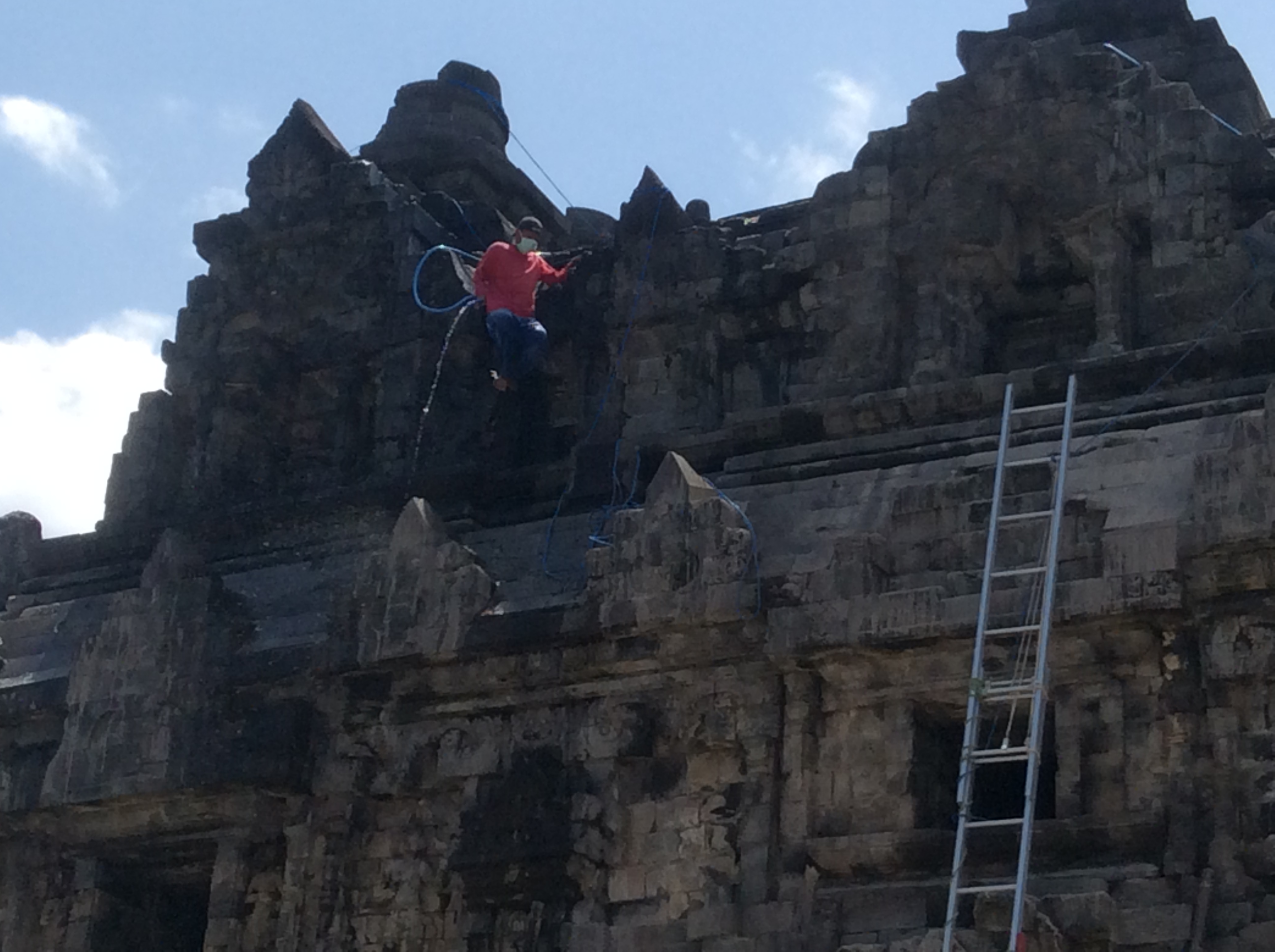 A major reason why we came to this part of Indonesia was to visit Borobudur, Prambanan, and other smaller Buddhist and Hindu temples scattered around the Kedu plain, north of Yogyakarta. Well, Mt. Kelud’s eruption put paid to that plan! With equal indifference the volcano covered all temples, Buddhist and Hindu alike, with a layer of ash. Result: all the sites were closed to visitors while clean-up crews moved in to wash off the ash.