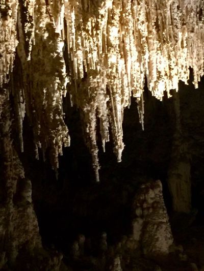 Alert readers of my previous posting may have been asking themselves what was the origin of the gypsum strata in the San Andres and Sacramento mountain ranges, which had played such a crucial role in the creation of the White Sands dunes (because, of course, they had not been magically created out of nothing, nor had they been lying there since the birth of the Earth). I’m not sure I can give a categorical answer to this question, but our visit to the nearby Carslbad caverns suggested one possible answer.