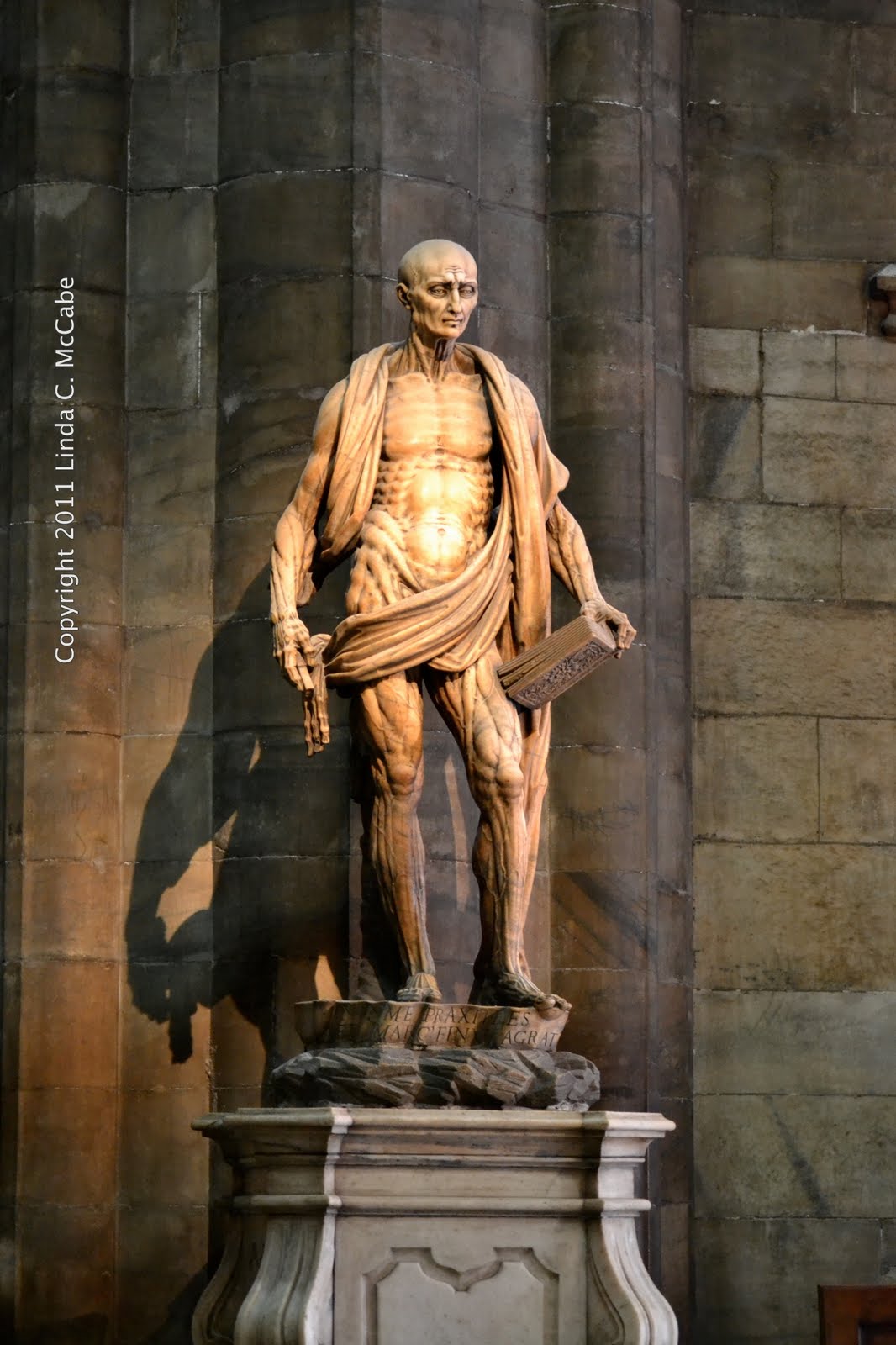 St. Bartholomew statue Duomo: http://1.bp.blogspot.com/-e4KglOQz_YY/TpSZV147dJI/AAAAAAAAFww/NlApP8L0T-I/s1600/Flayed%2Bsaint.jpg