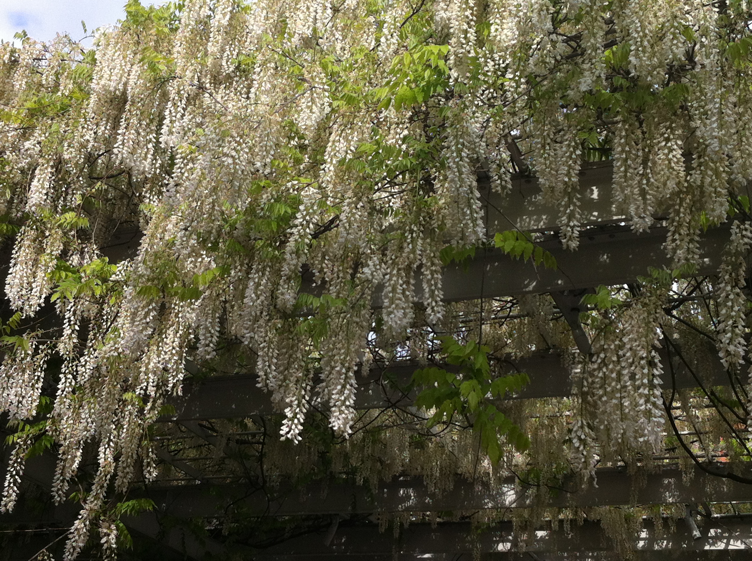 And just last year, when we were in Philadelphia, we stumbled onto a pergola covered by a thick coat of white wisteria, which was a first for me (I’ve mentioned this in an earlier post but I repeat the photo)